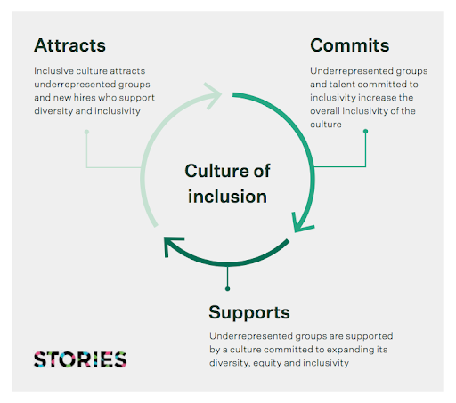 The best DEI content provides proof of attraction, commitment and support of an inclusive culture – all the elements of the cycle. For instance, this story from Tiffany of Dell Technologies shows Dell’s culture of support for her professional goals, personal life and the employee resource group (ERG) she helps lead. Because her story and examples are so personal and specific, they provide real insight into the culture and evidence of a culture that values inclusion.